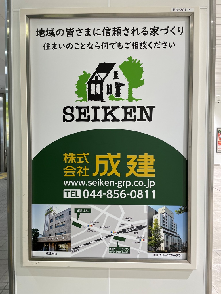 宮前平駅の改札内に看板を設置しました!